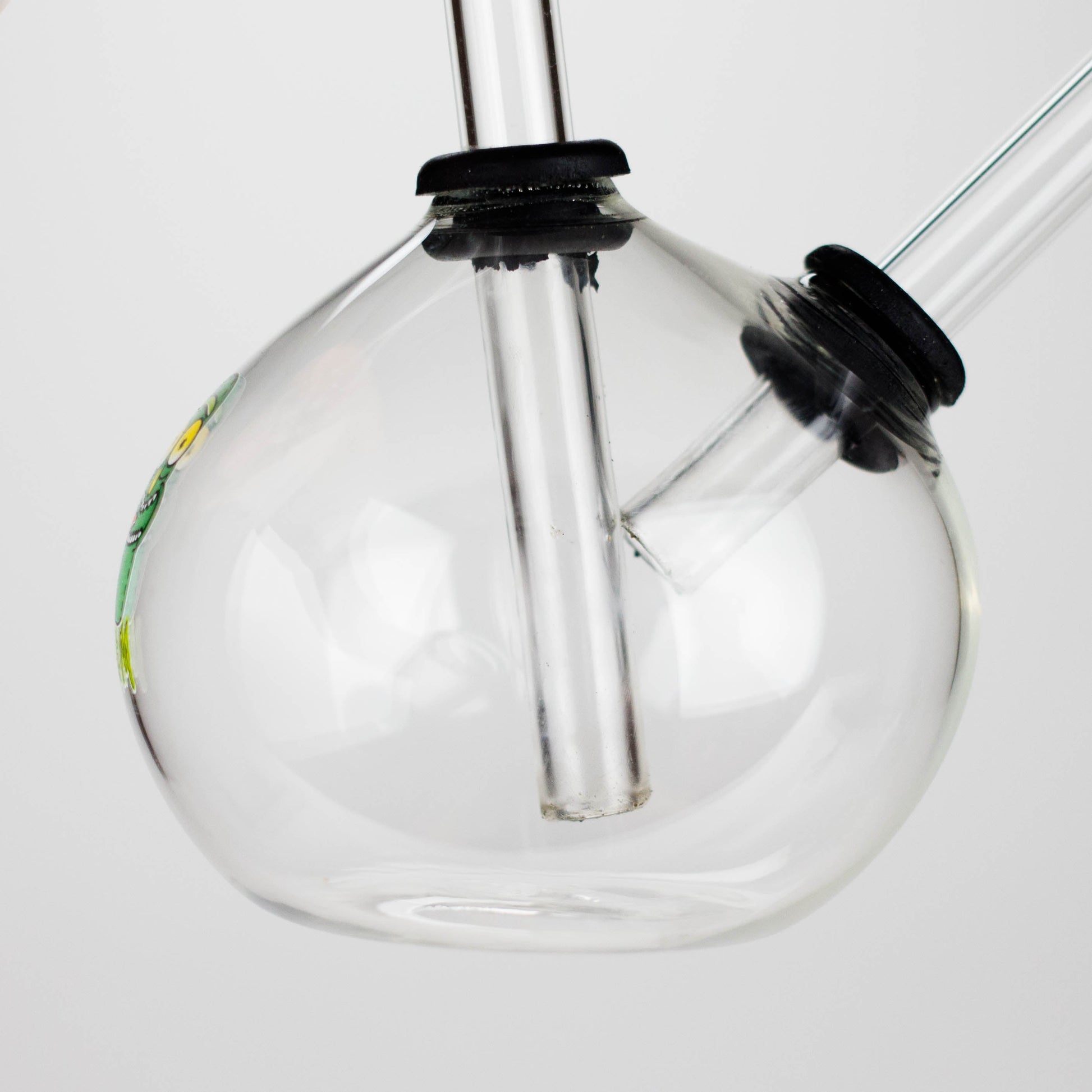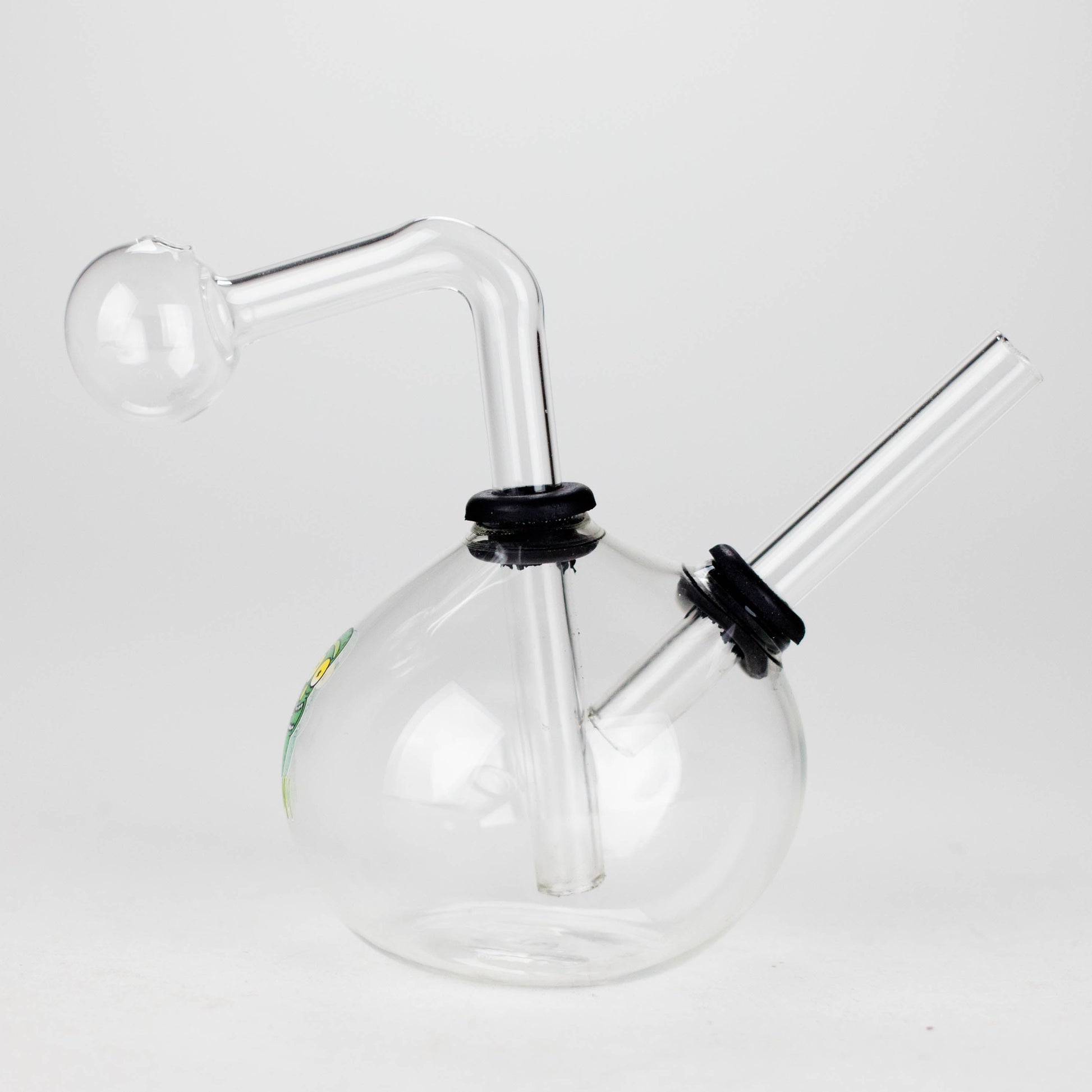 Add some personality to your collection with this 4-inch Snooper Ball Bulb Glass Oil Burner Pipe, featuring a vibrant Mix Sticker design. Made from premium borosilicate glass, this pipe is heat-resistant, durable, and easy to clean. The round bulb chamber allows for optimal heat distribution and smooth vapor production, while the angled neck and straight mouthpiece make it comfortable to use. Perfect for those seeking both style and functionality, this glass oil burner stands out with its unique artwork and sturdy construction.