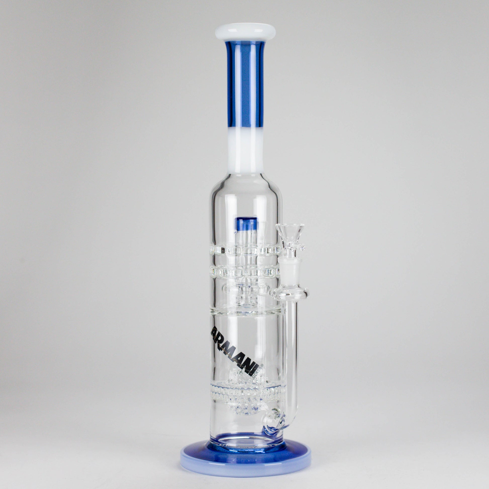 Upgrade your collection with the Armani Glass 16" Double Percolator Bong — the ultimate in style, performance, and craftsmanship.